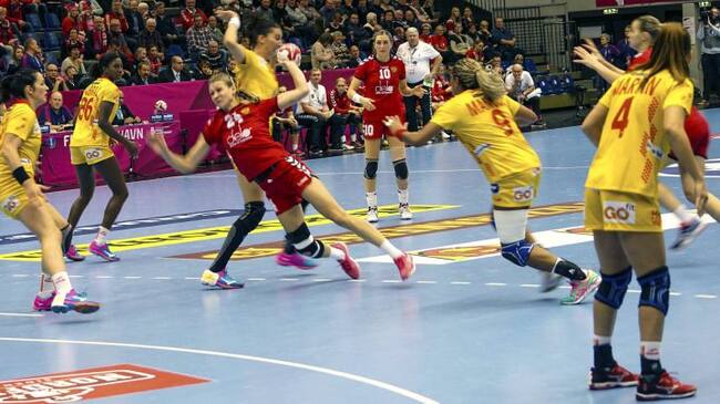 El equipo español trata de frenar un ataque de Rusia en el segundo partido de España en el Mundial de Dinamarca.(EFE)