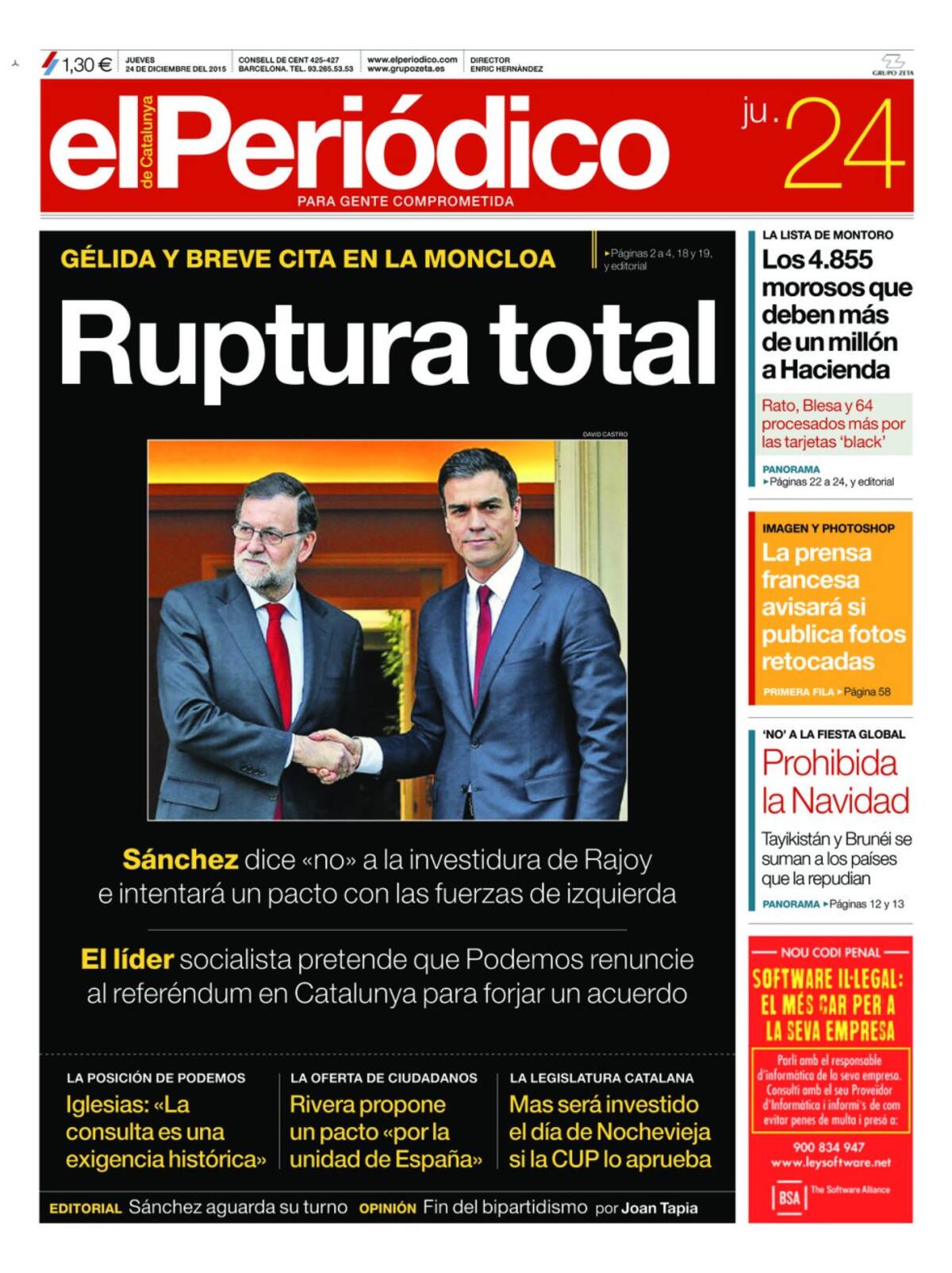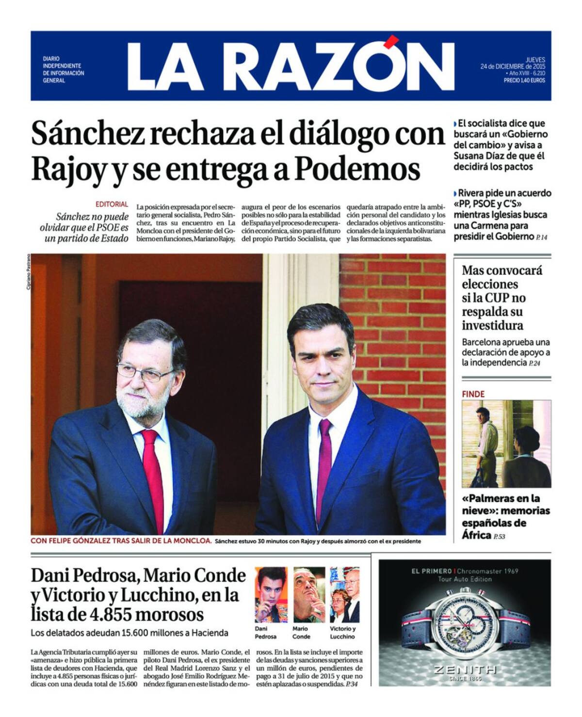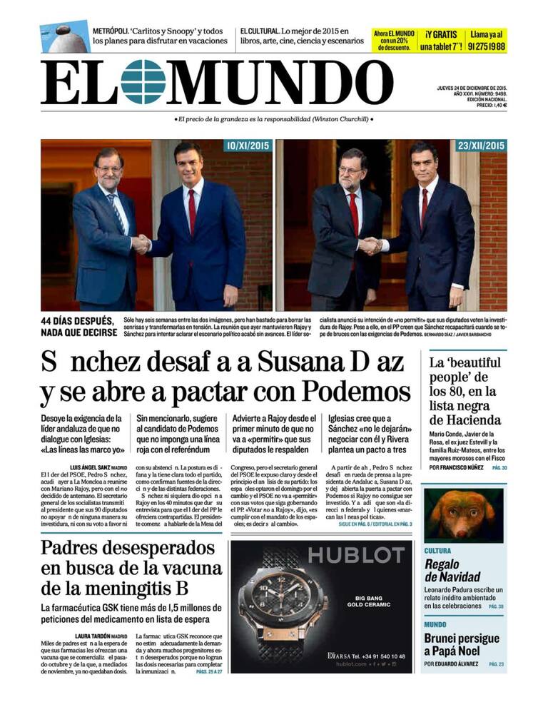 Portadas periódicos 24 de diciembre de 2015