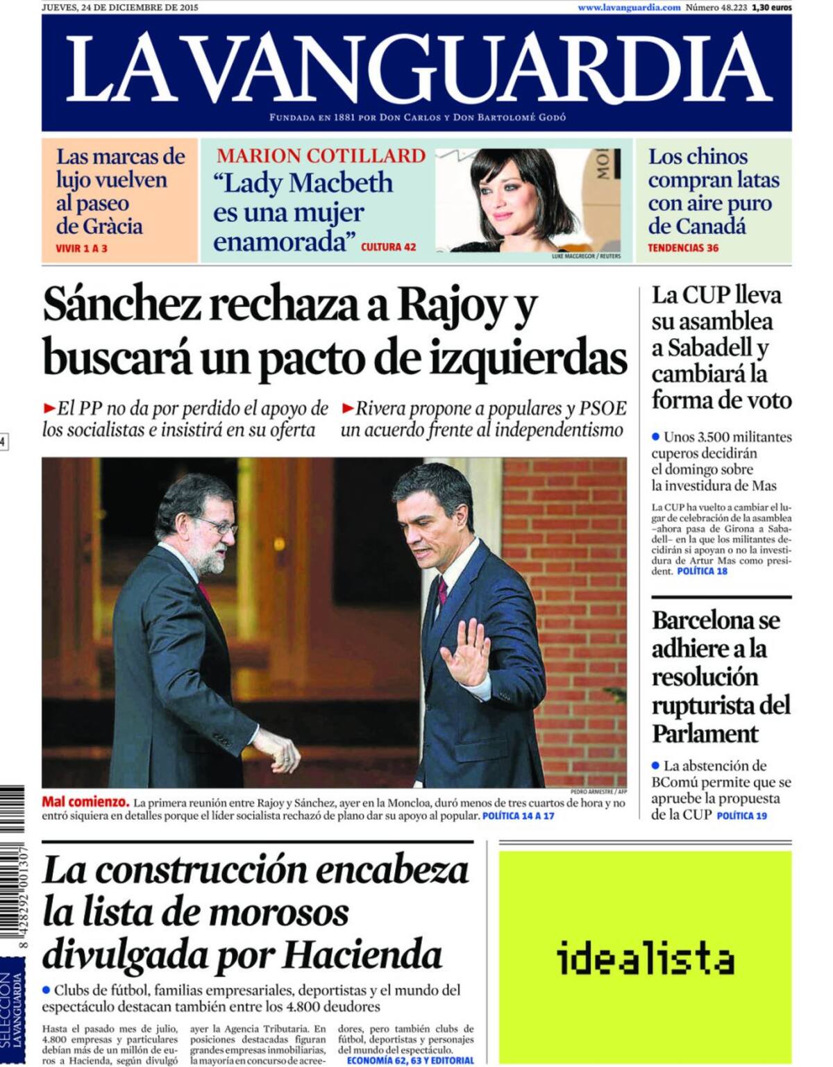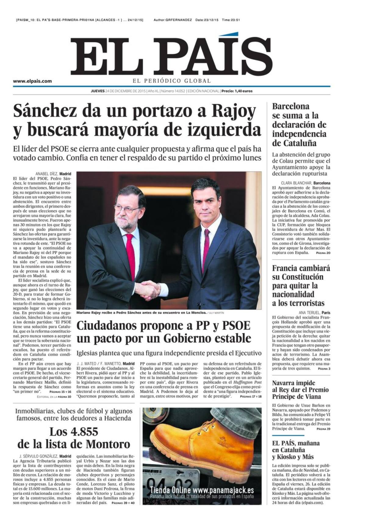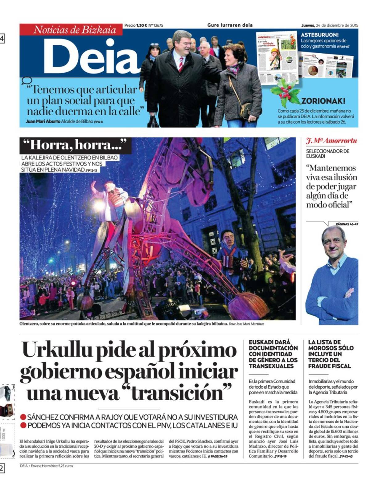 Portadas periódicos 24 de diciembre de 2015