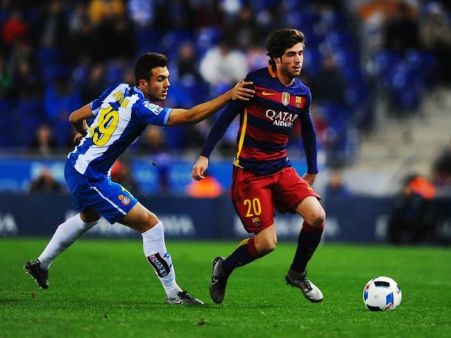 Sergi Roberto presionado por Joan Jordan / David Ramos (Getty Images)