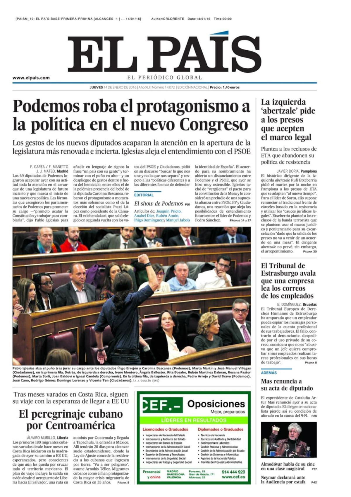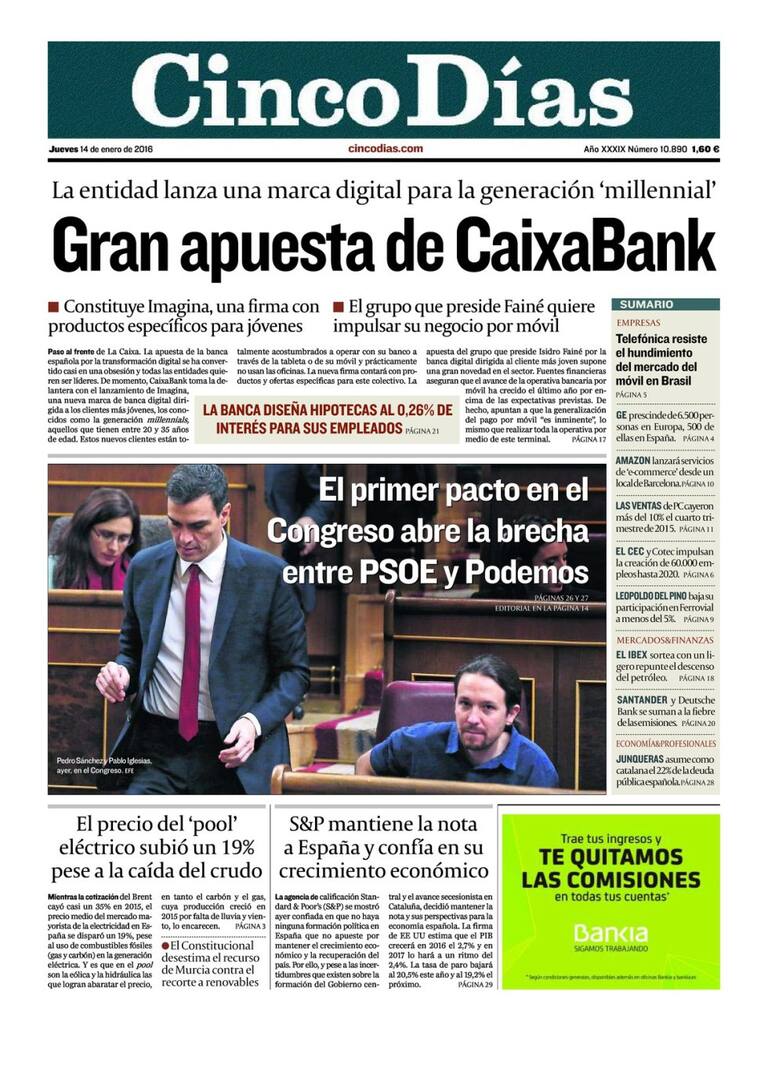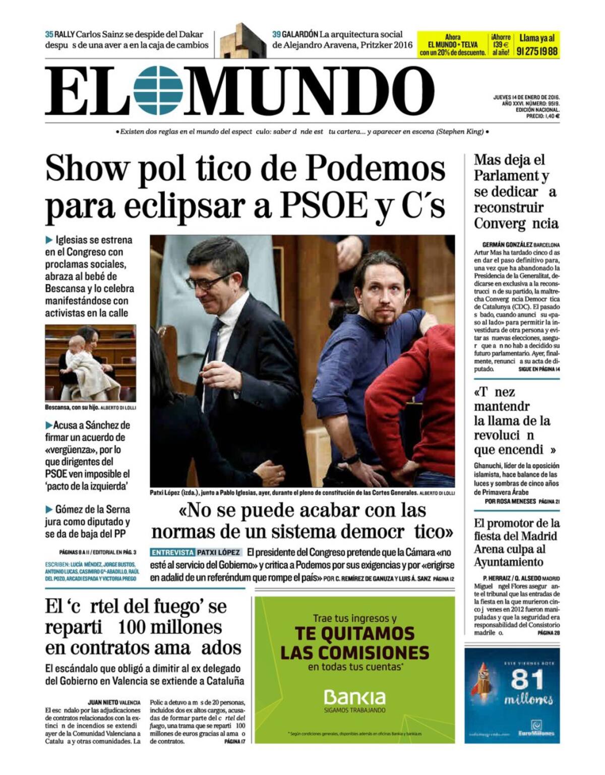 Portadas periódicos 14 de enero de 2016