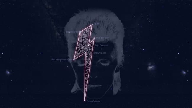 La disposición de las estrellas en el espacio recuerda el relámpago con el que aparecía David Bowie en la portada de su álbum Aladdin Sane, en 1973