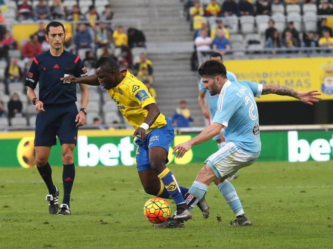 Con este apurado triunfo el conjunto canario sale de los puestos de descenso, pero para ello tuvo que remontar, porque el Celta, flamante semifinalista de la Copa del Rey, comenzó mandando y en su primera llegada clara desnudó a la defensa amarilla. Planas envió un balón que tocó Wakaso y quedó para Bongonda, quien se coló entre David Simón y Aythami, y dentro del área enganchó un gran disparo a media altura que superó a Javi Varas.