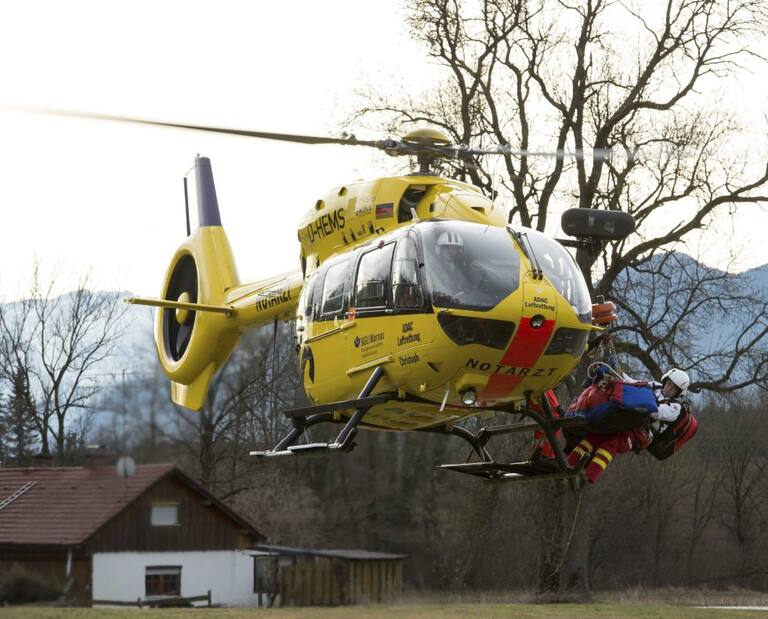 Un helicóptero evacúa a los heridos del lugar donde se ha producido el choque de dos trenes.