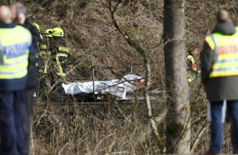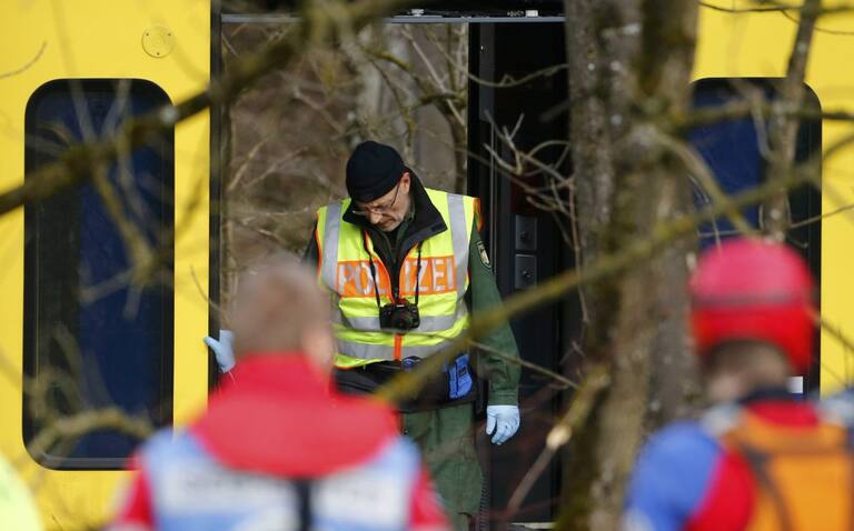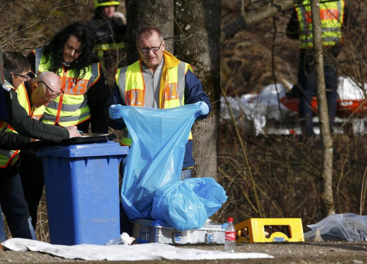 La policía alemana recoge las pertenencias de los pasajeros de los trenes accidentados.