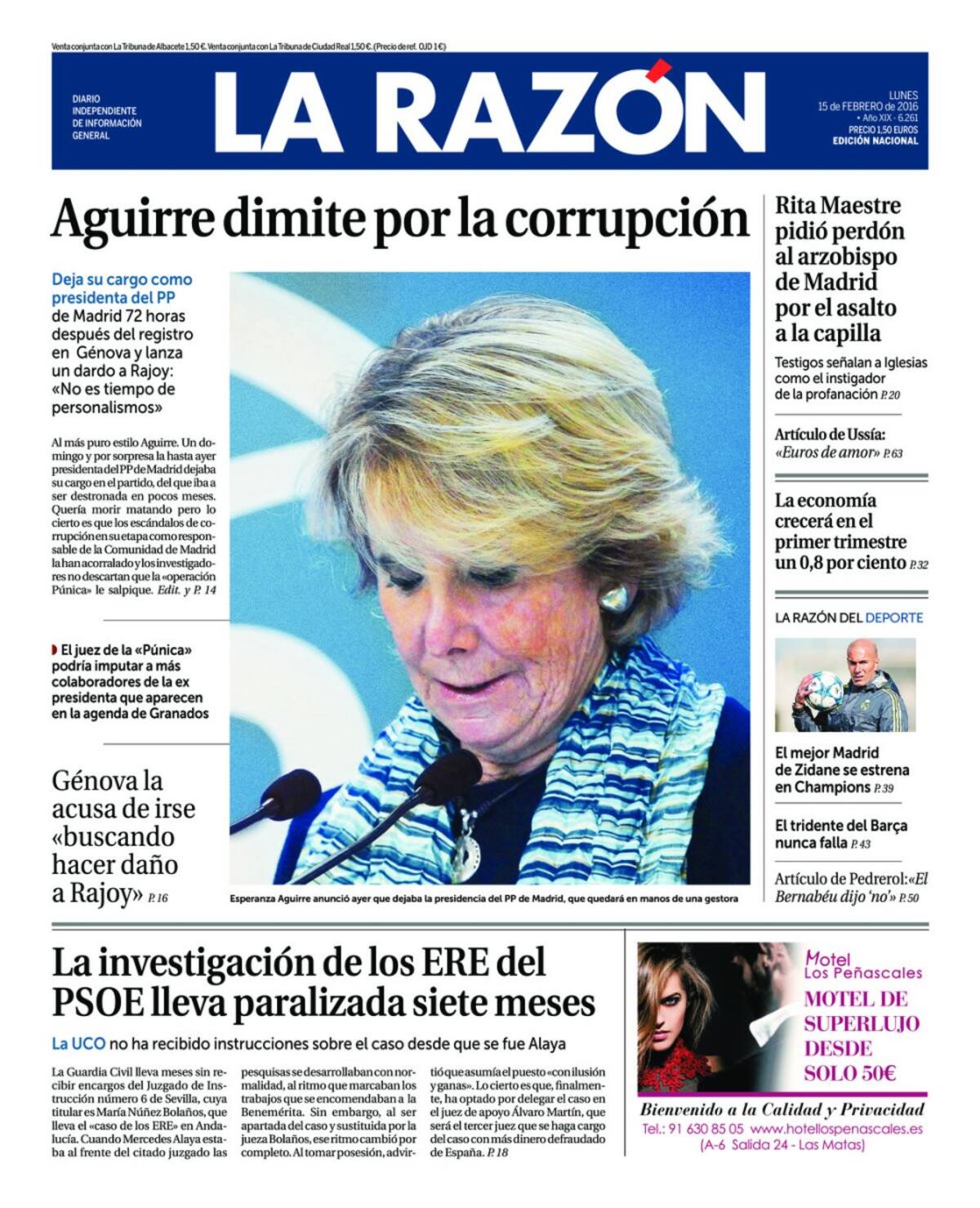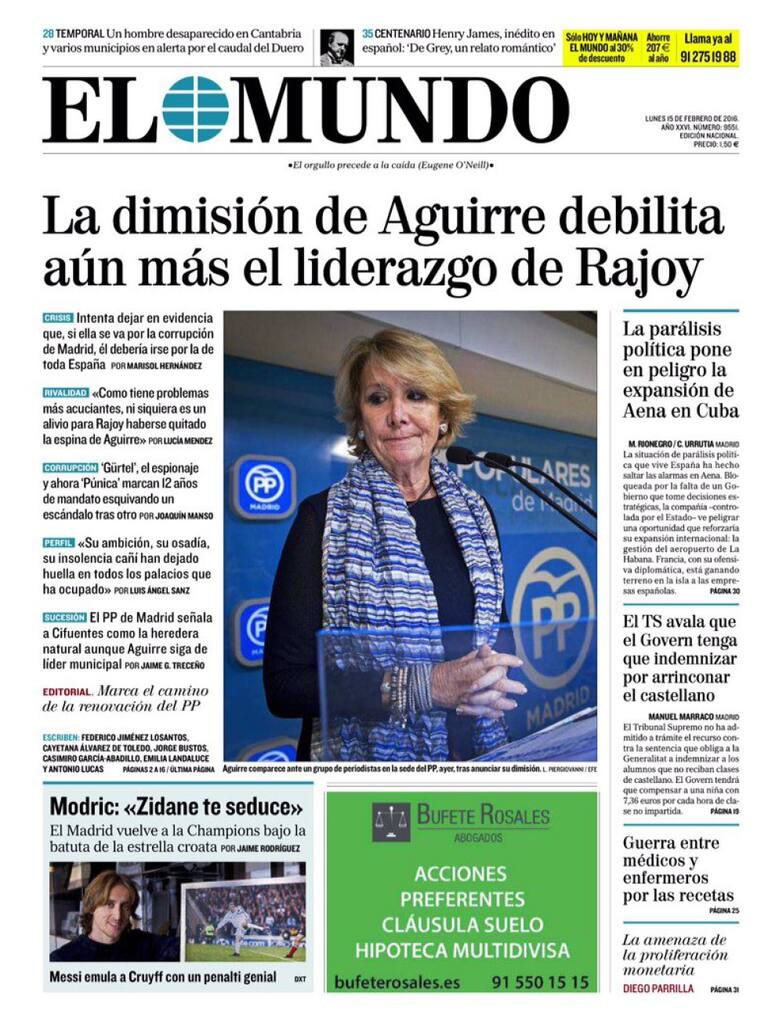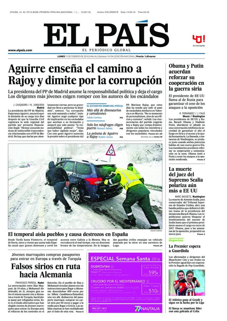 Portadas periódicos 15 de febrero de 2016