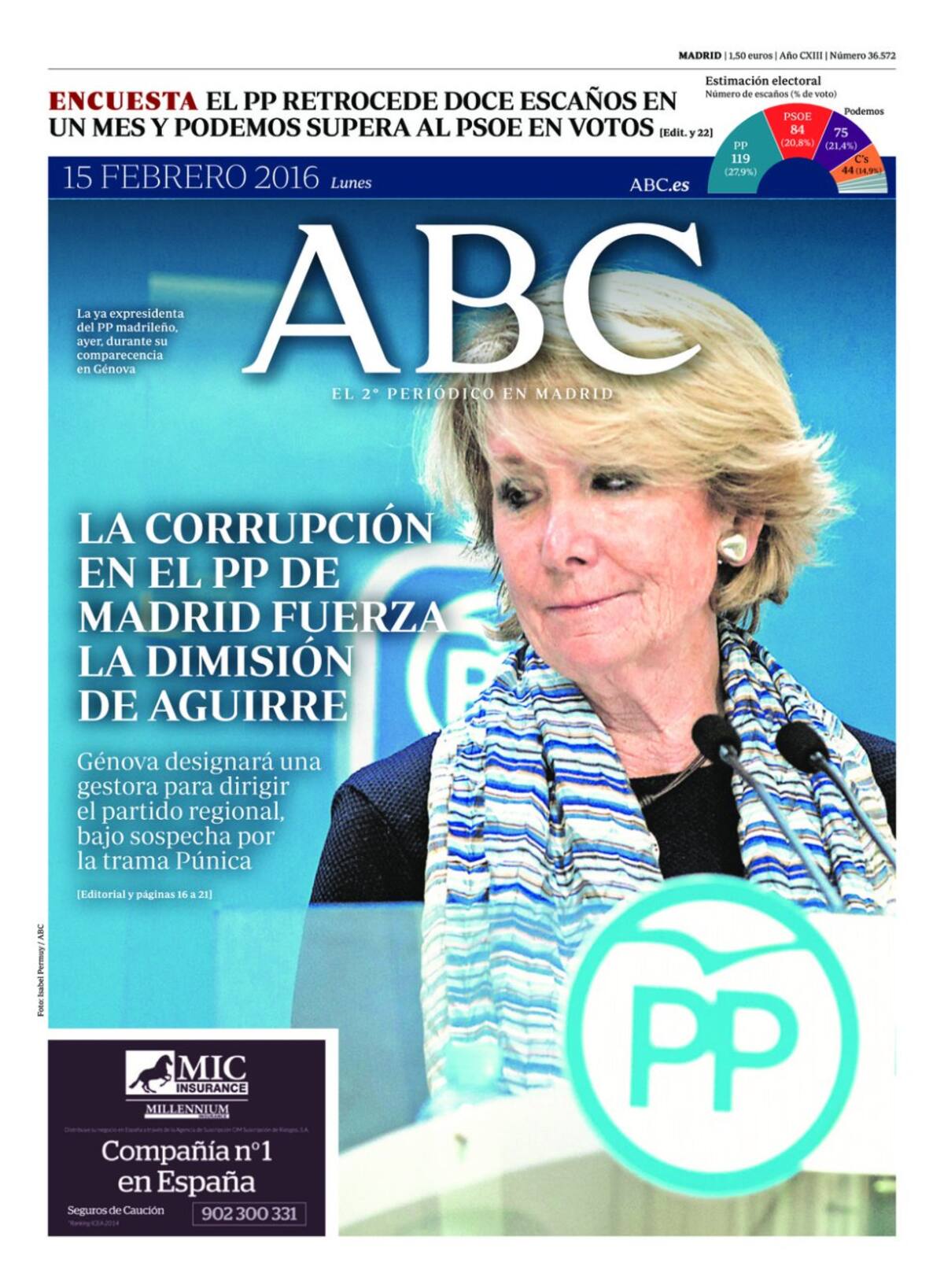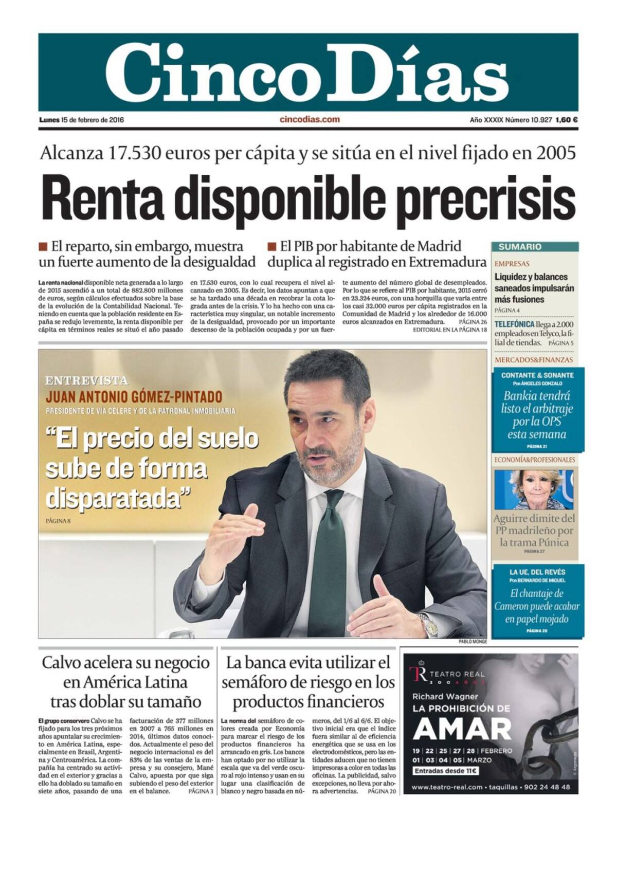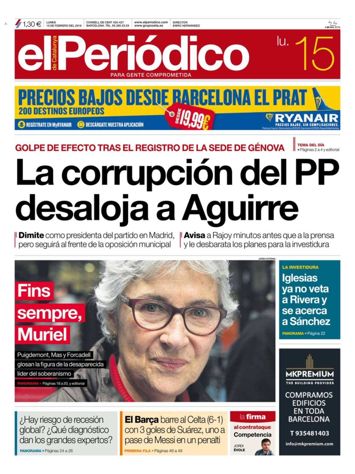 Portadas periódicos 15 de febrero de 2016
