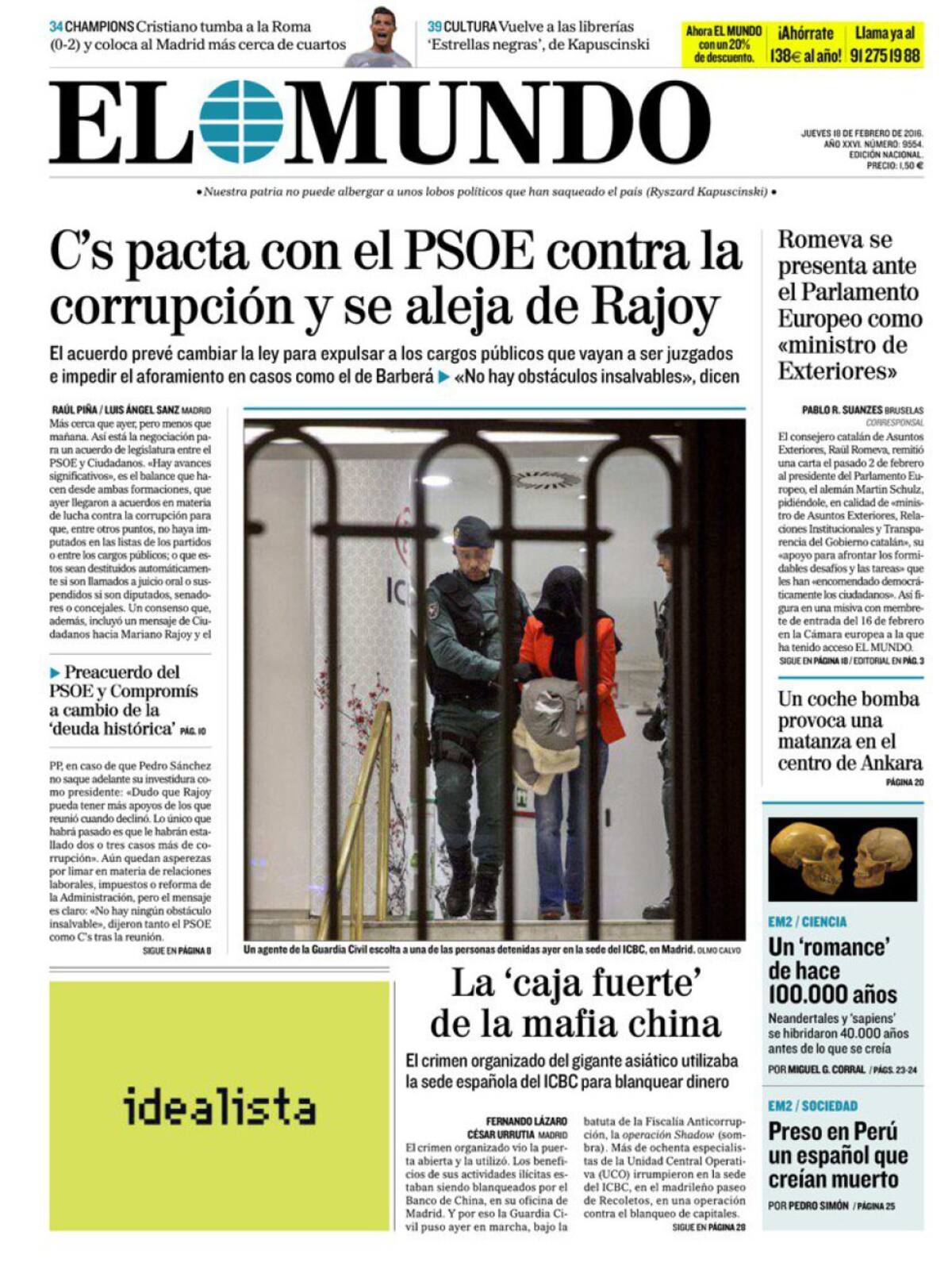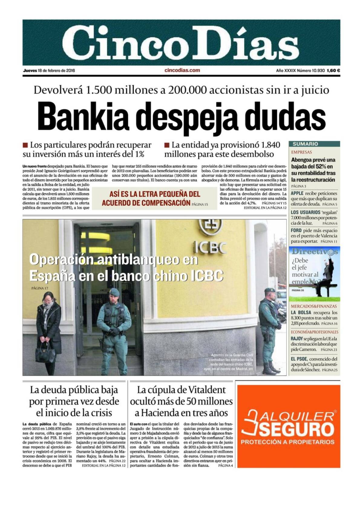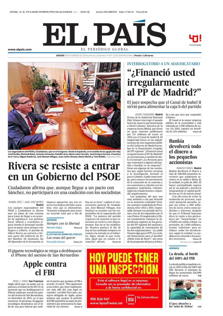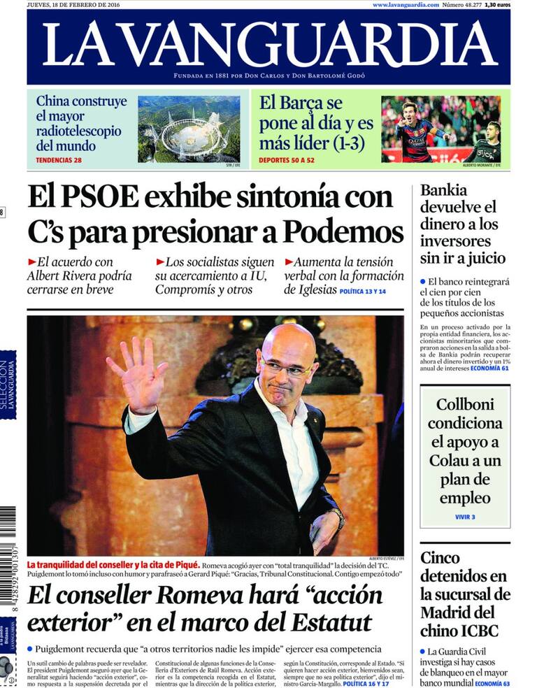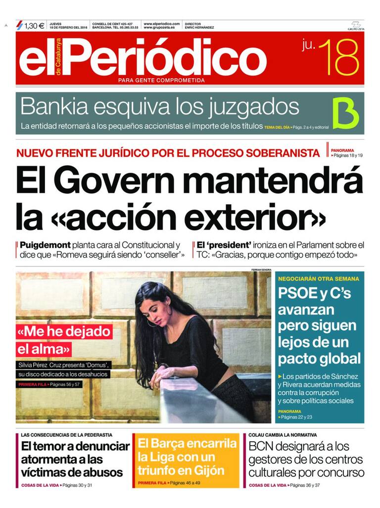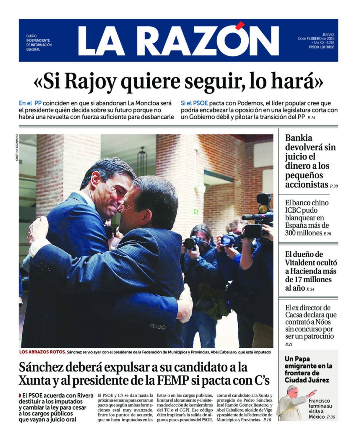 Portadas periódicos 18 de febrero de 2016