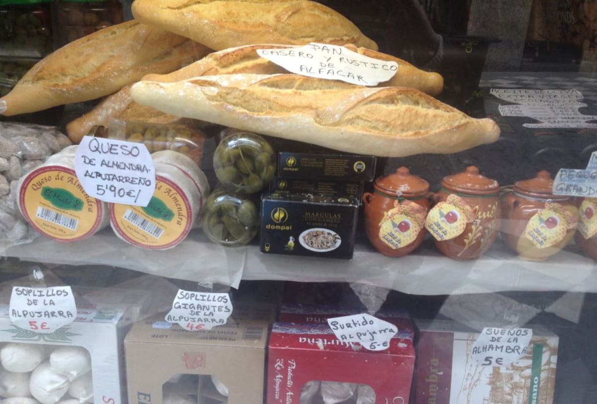 Un escaparate lleno de productos típicos de la provincia de Granada, en la céntrica calle de San Antón.