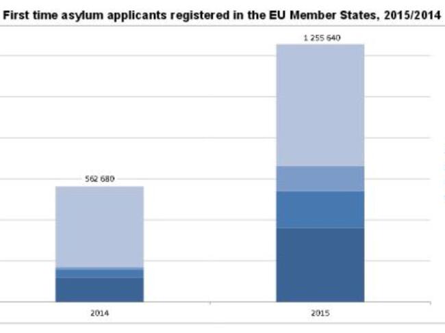 Las solicitudes de asilo crecieron un 123% en la Unión Europea en 2015
