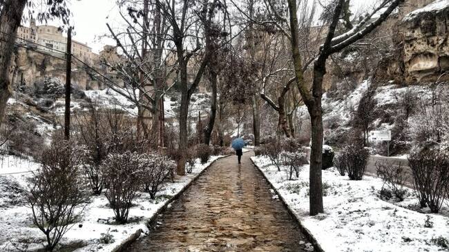 Algunos conquenses han salido a pasear a pesar de la nevada. / Cadena SER