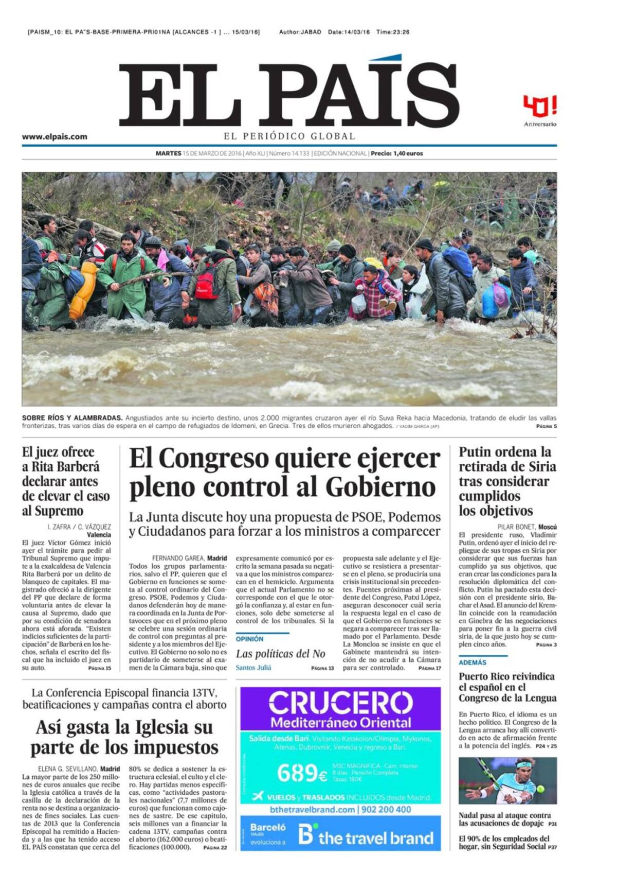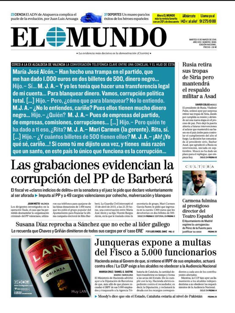 Portadas periódicos 15 de marzo de 2016