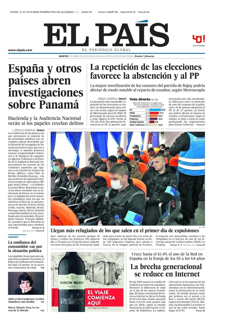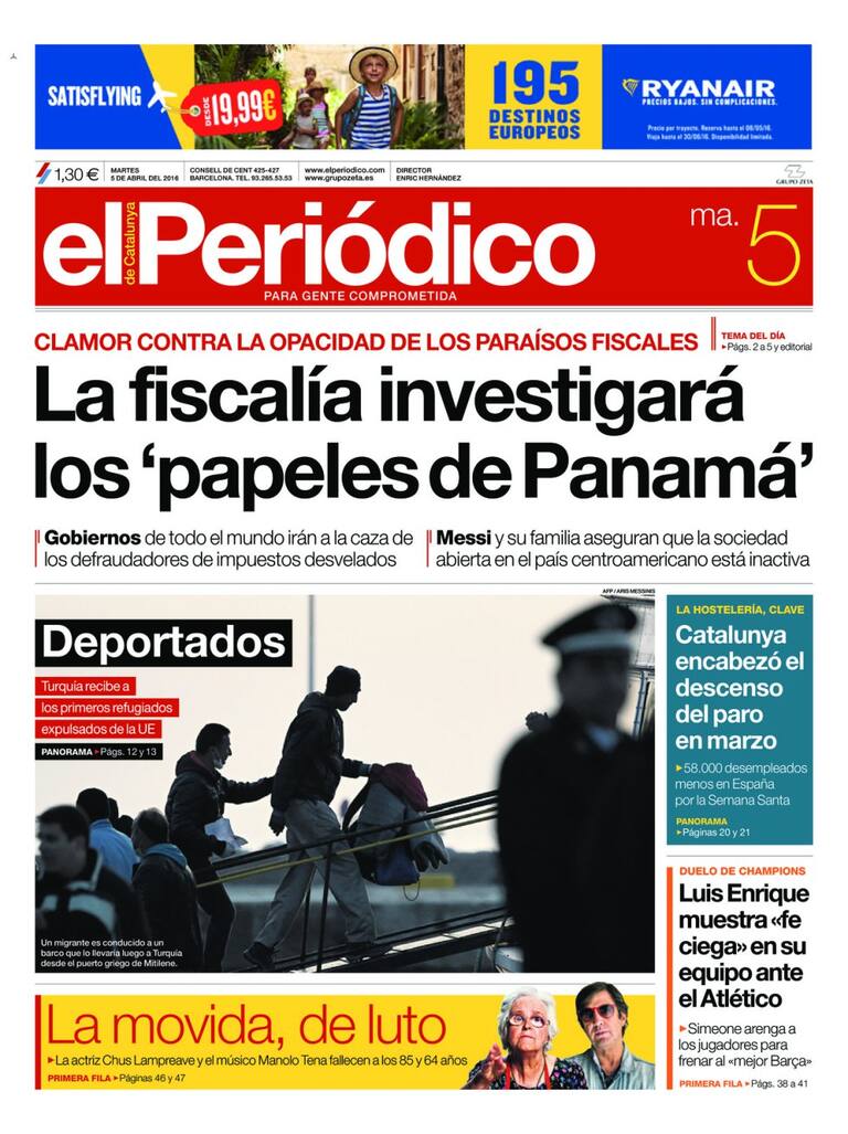 Portadas periódicos 5 de abril de 2016
