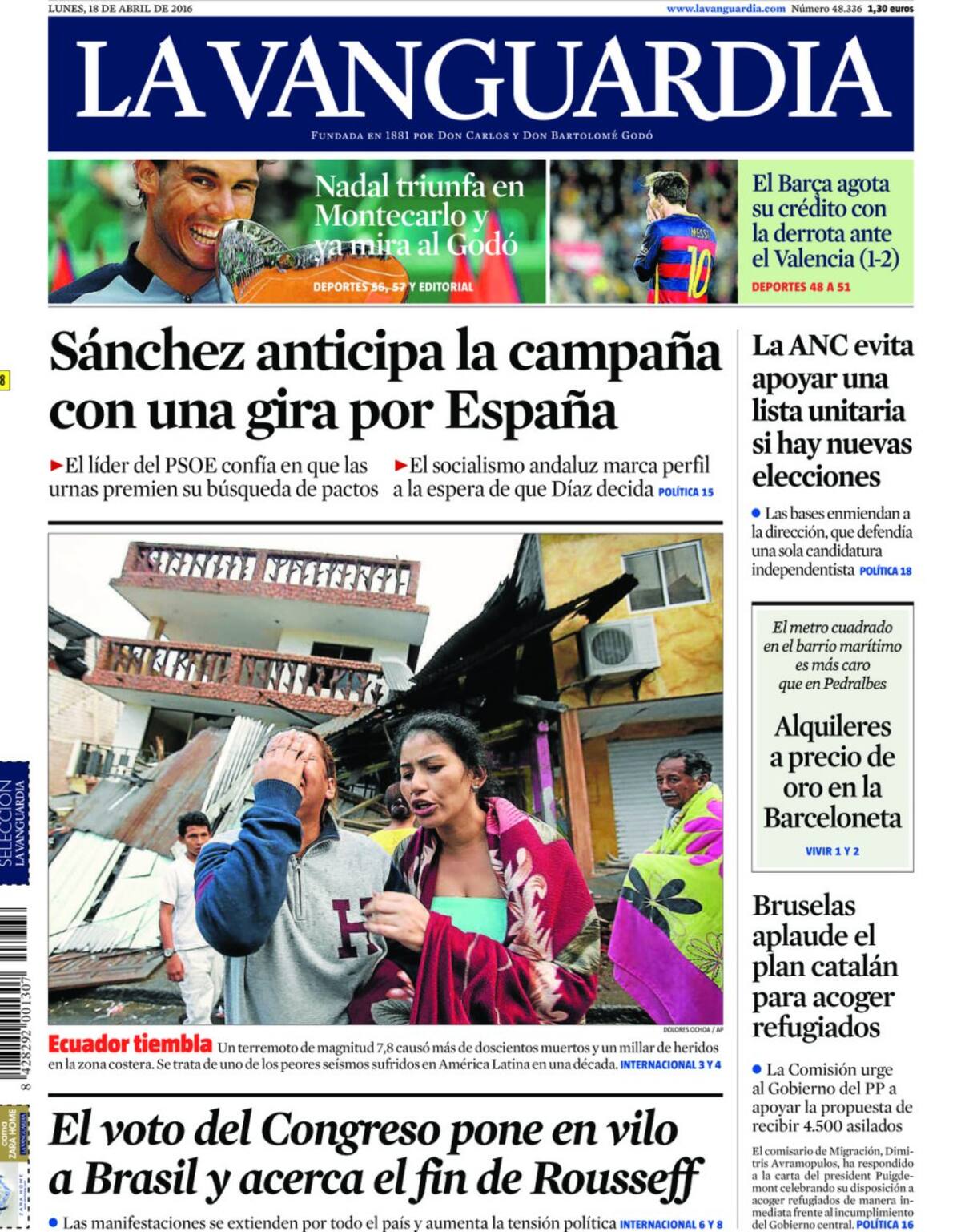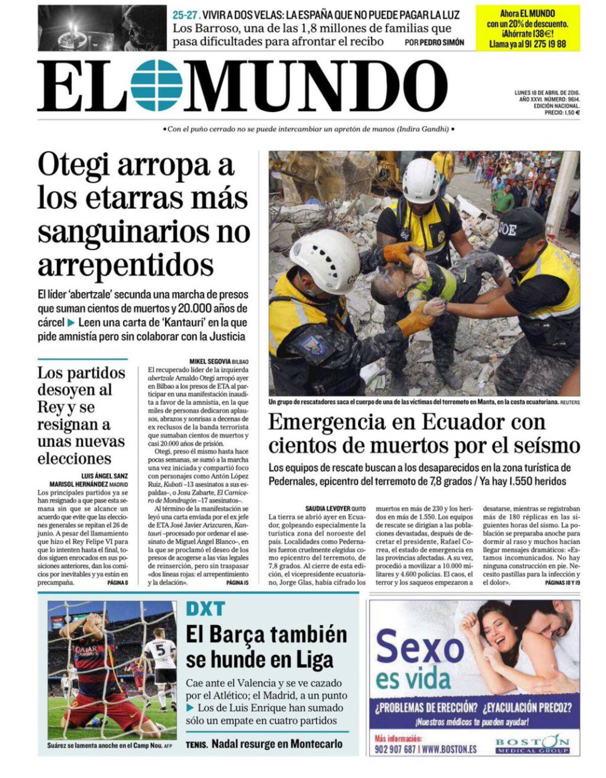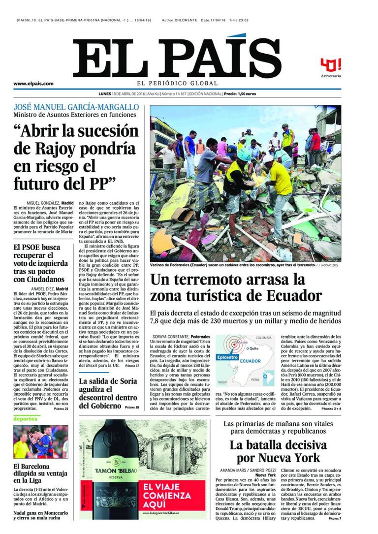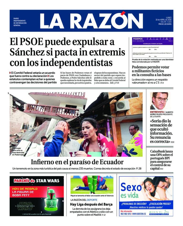 Portadas periódicos 18 de abril de 2016
