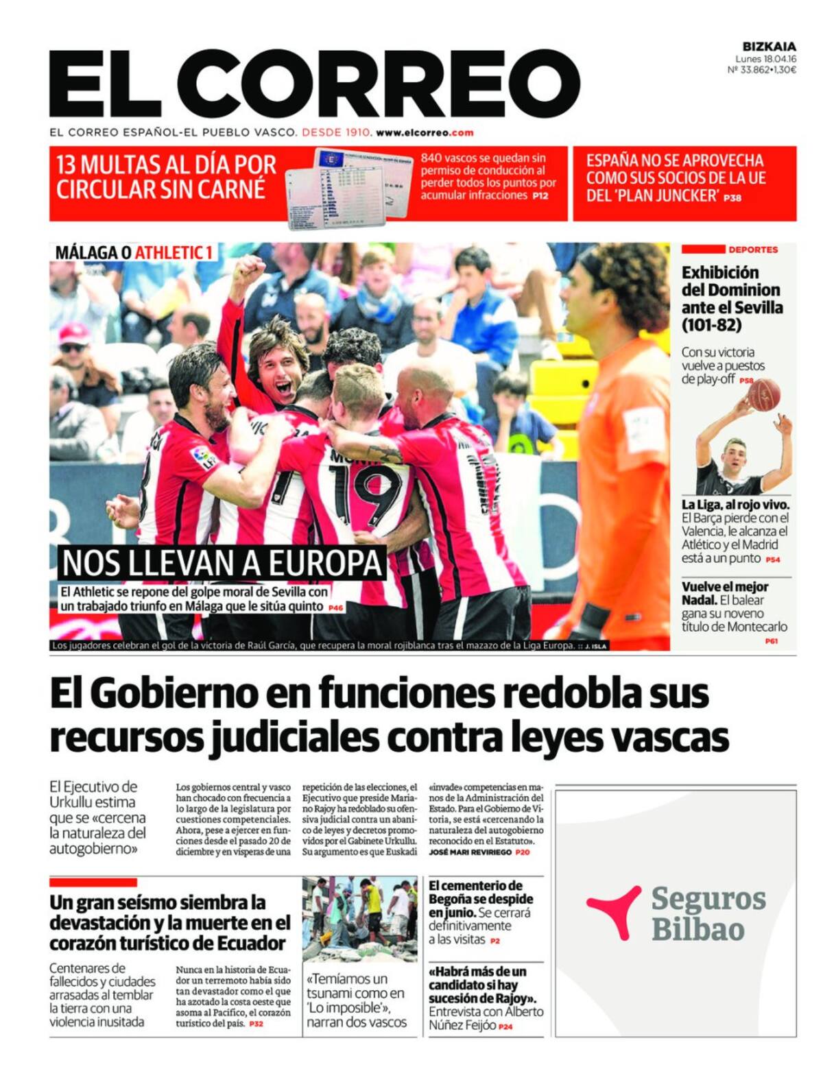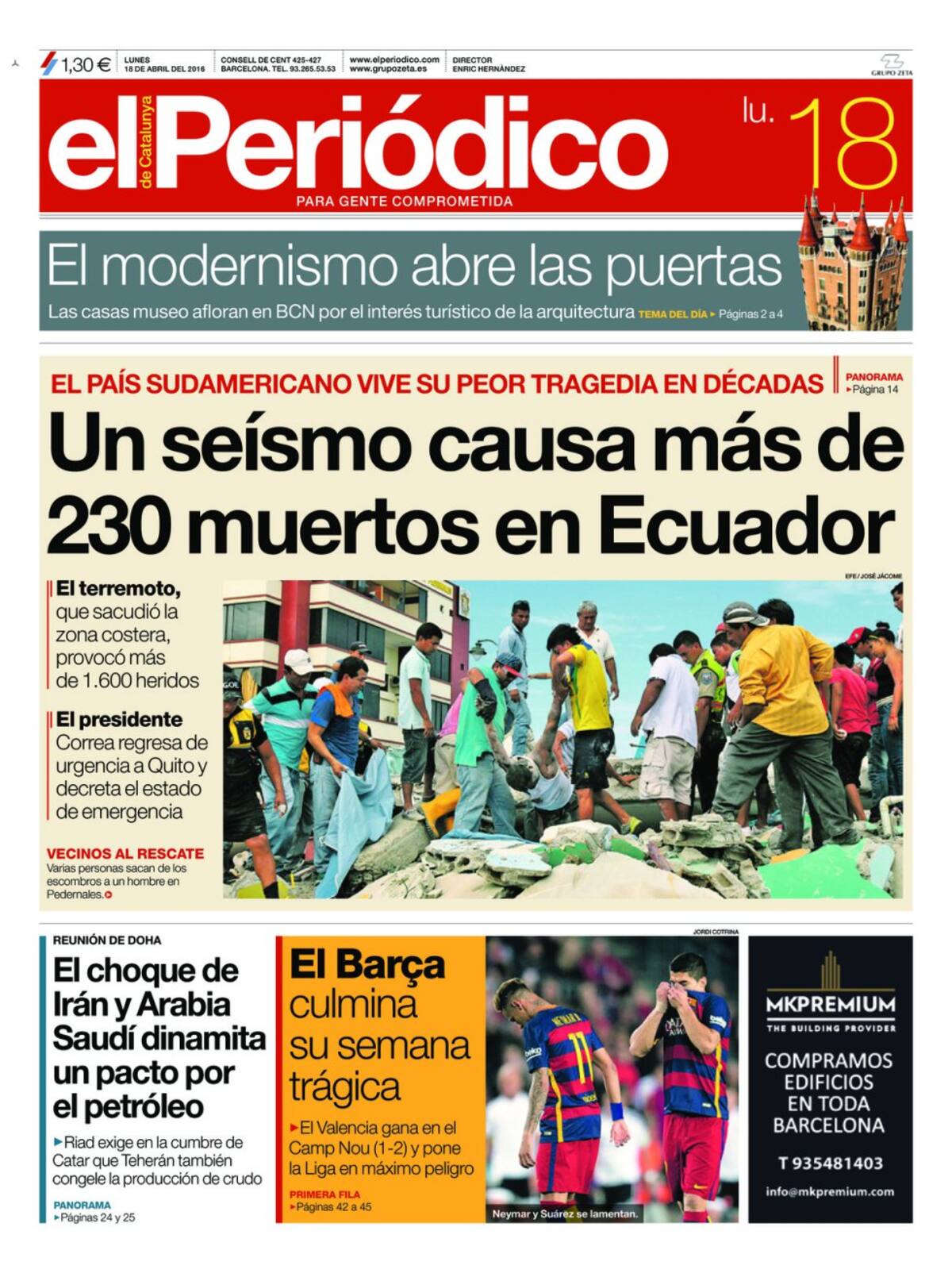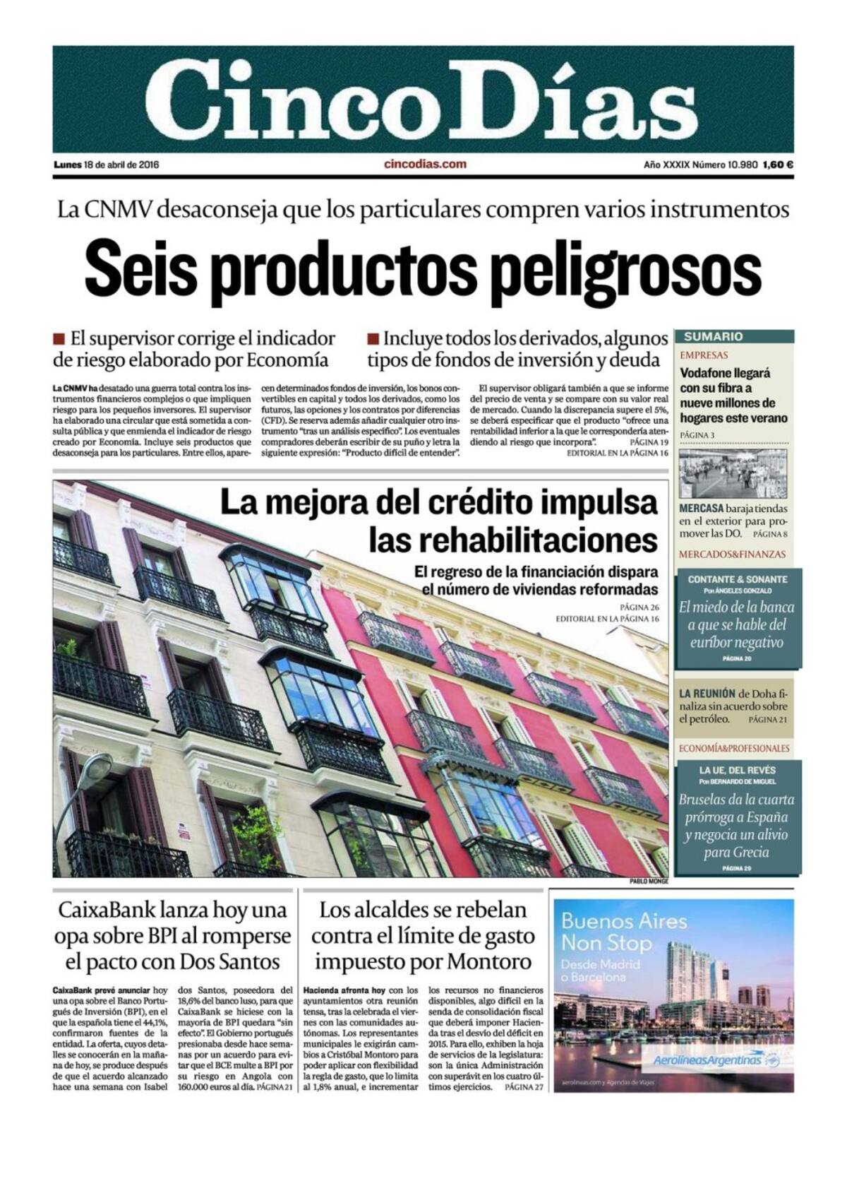 Portadas periódicos 18 de abril de 2016