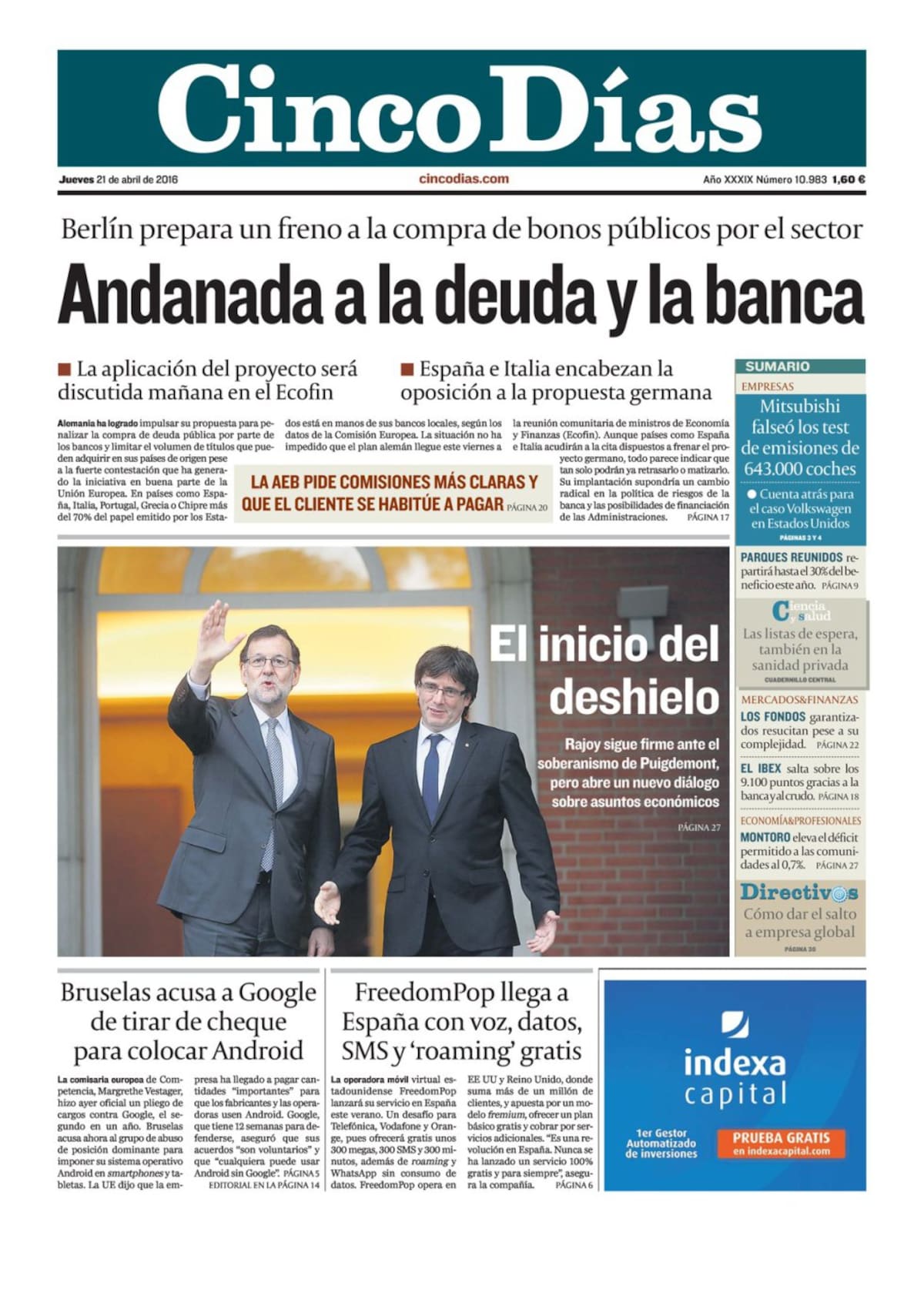 Portadas periódicos 21 de abril de 2016