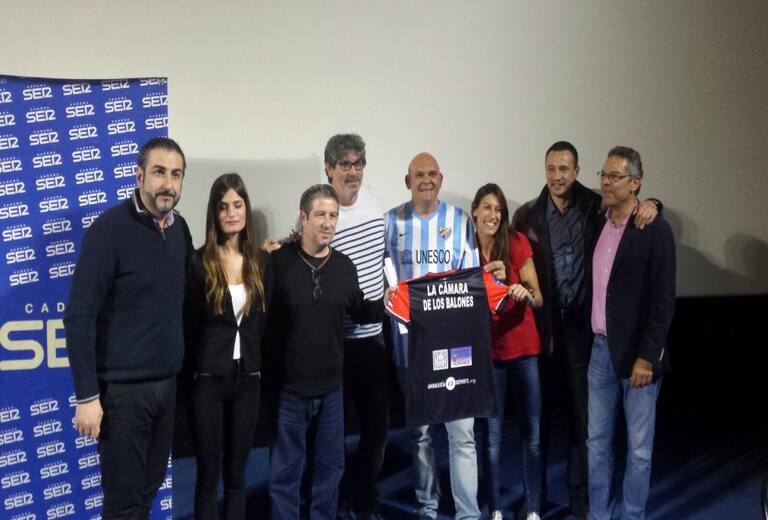Los integrantes del programa junto con el director de Hoy por Hoy Sevilla, Salomón Hachuel, y el jefe de Deportes de SER Málaga, Justo Rodríguez