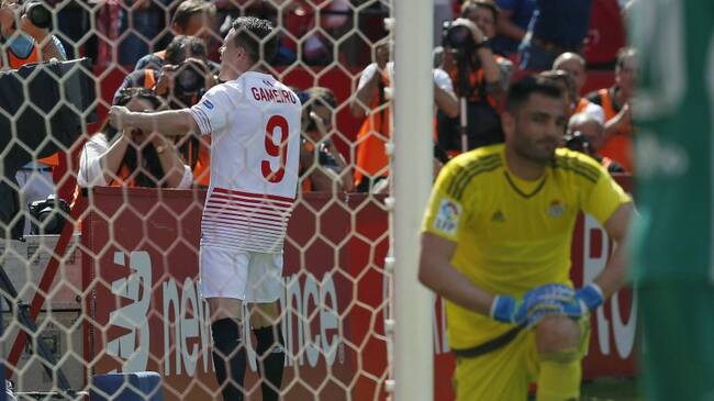 En uno de ellos llegó el 1-0 con un centro del francés Steven N'Zonzi por la izquierda y el remate de cabeza del goleador sevillista, Gamerio.