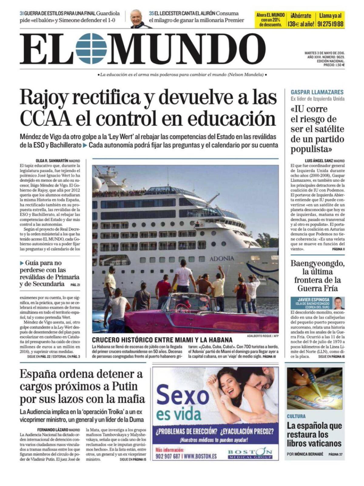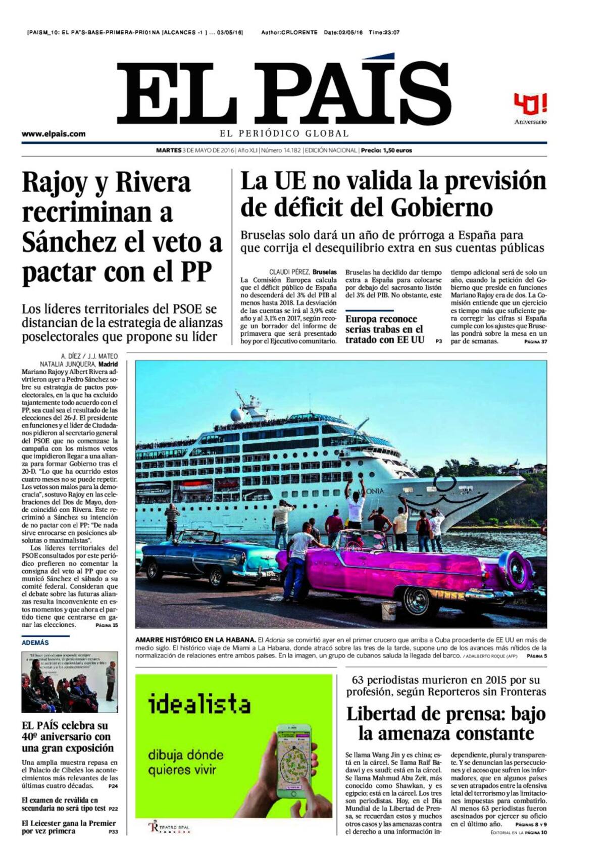 Portadas periódicos 3 de mayo de 2016