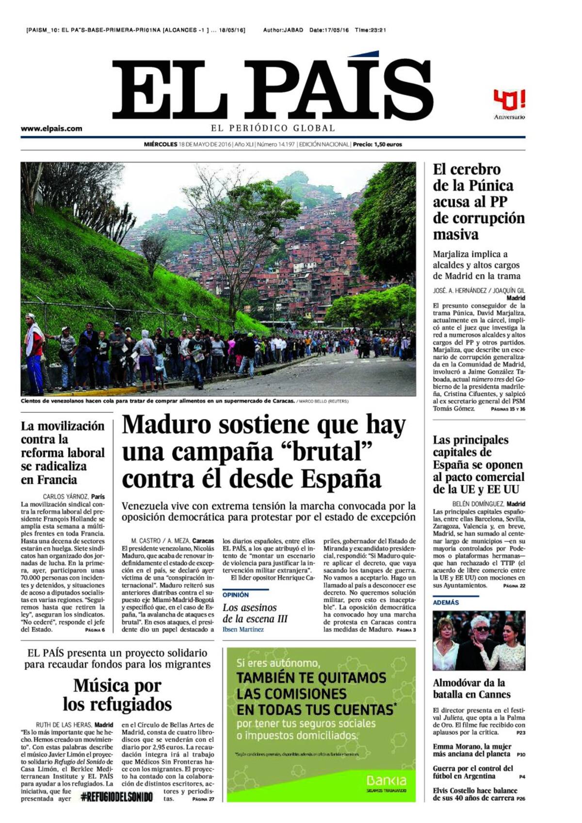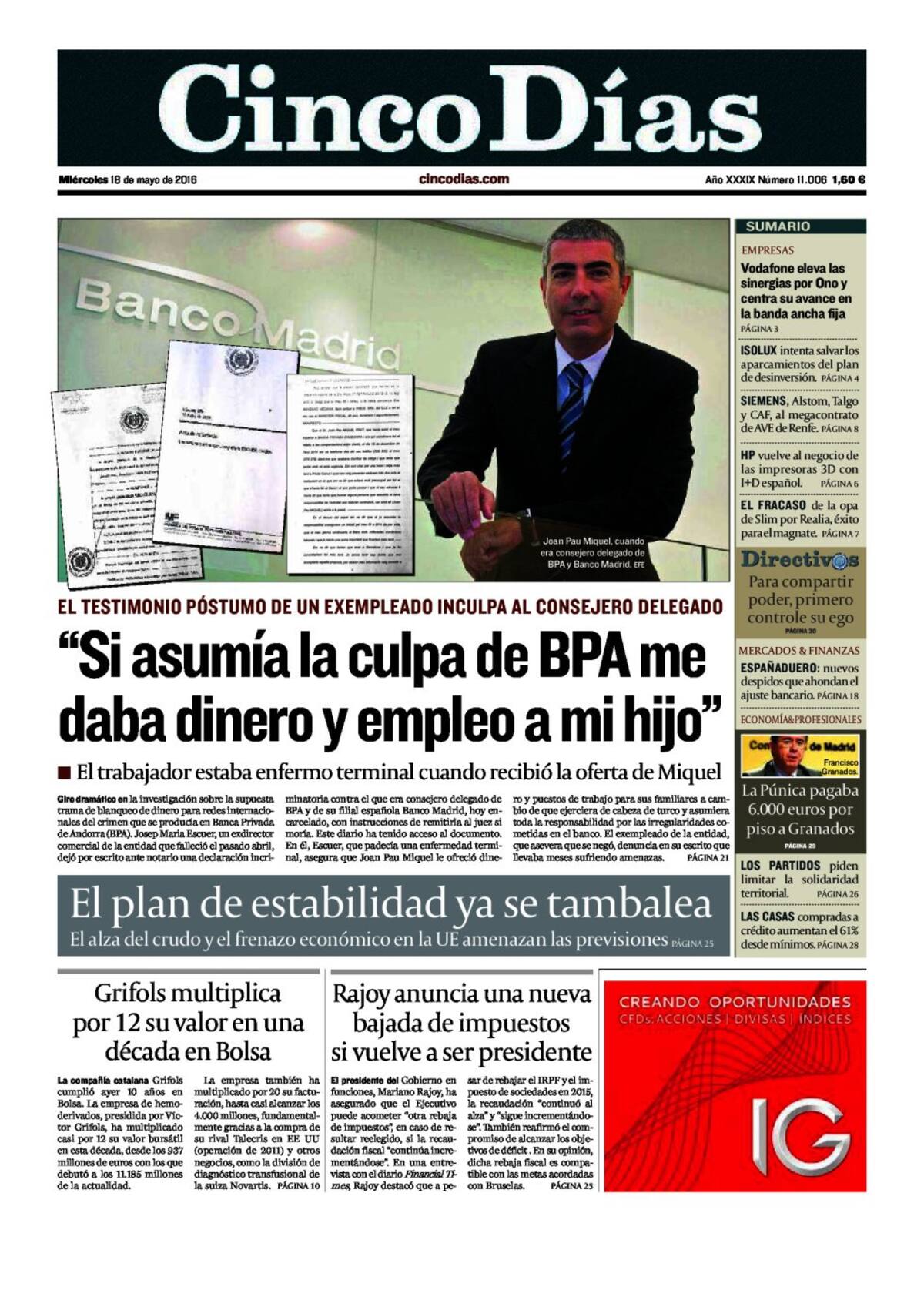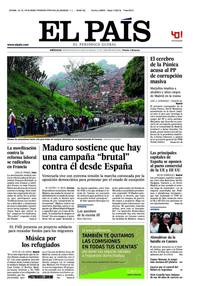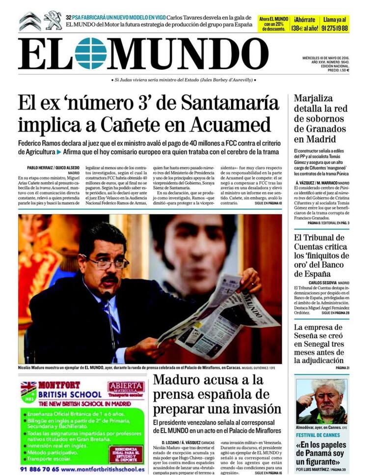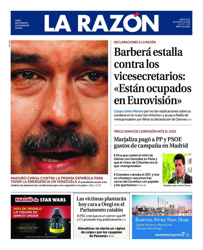 Portadas periódicos 18 de mayo de 2016