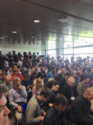 La sala de prensa de Valdebebas, abarrotada de periodistas / JAVIER HERRÁEZ