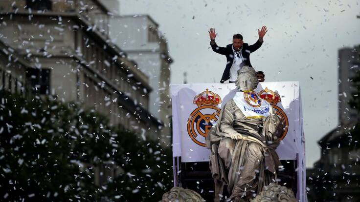 Posteriormente fue el defensa sevillano, en su condición de capitán, el encargado de atar una bandera del Real Madrid a la Cibeles y ofrecer la Copa de Europa con el 'We are the Champions' de Queen de fondo.