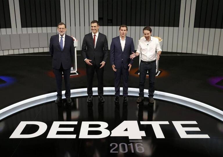 Rajoy, Sánchez, Rivera e Iglesias instantes antes de comenzar el debate
