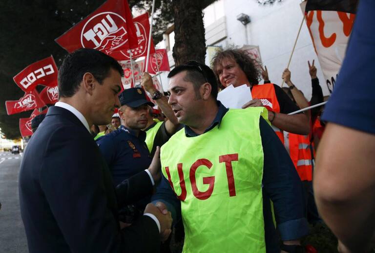Pedro Sánchez saludando a los trabajadores de UGT de RTVE