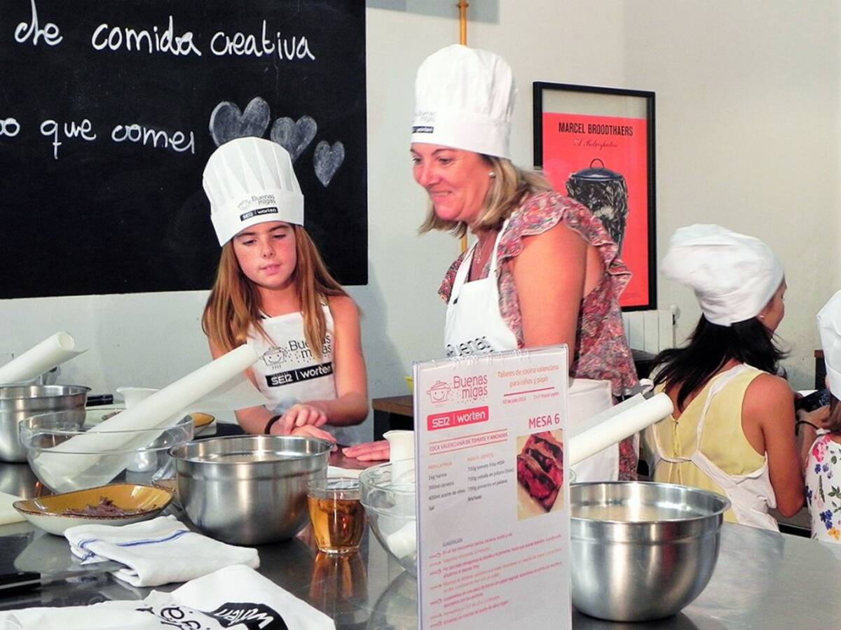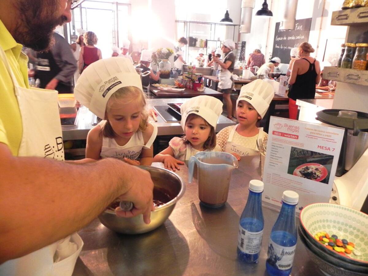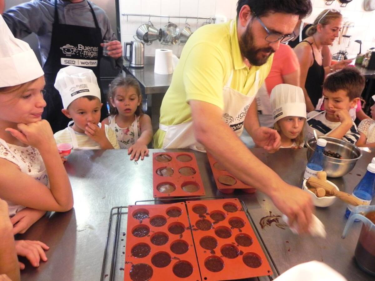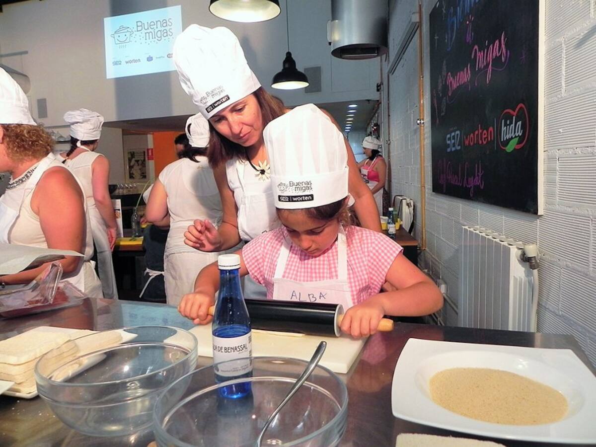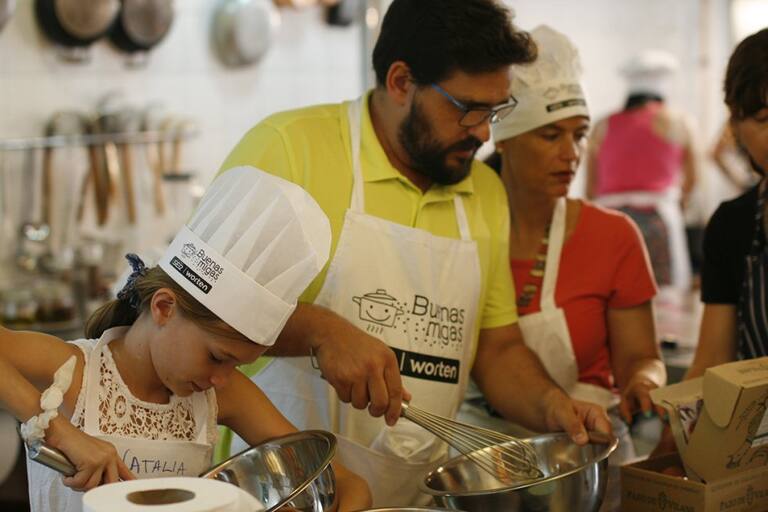 Los peques disfrutan con las manos en la masa en el último taller de Buenas Migas
