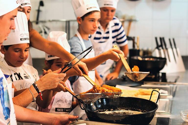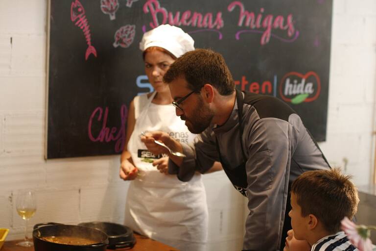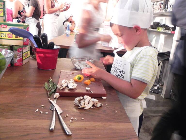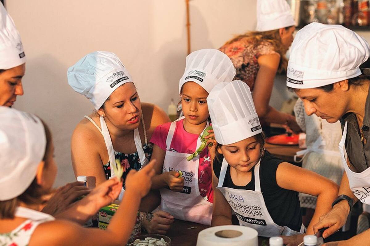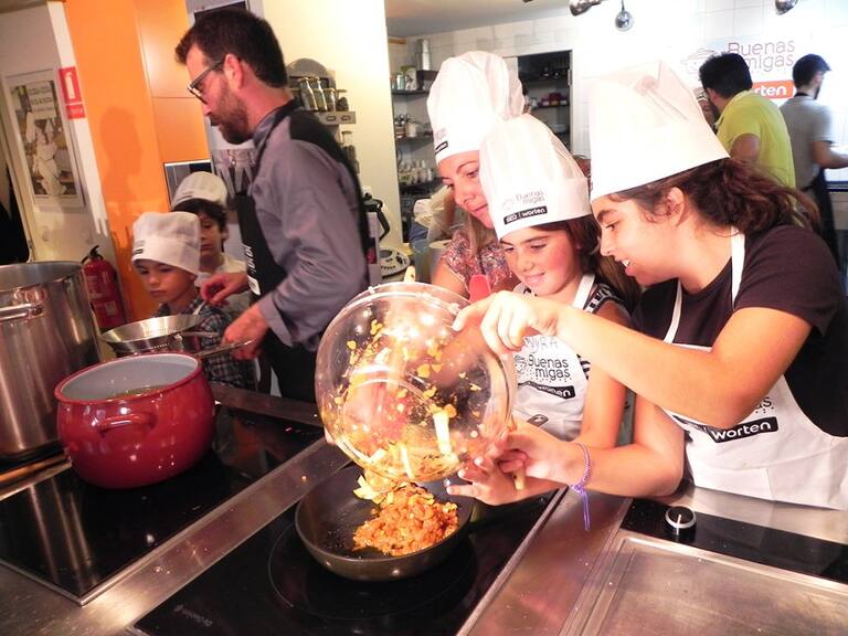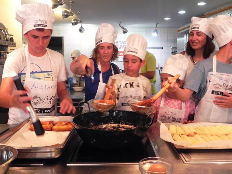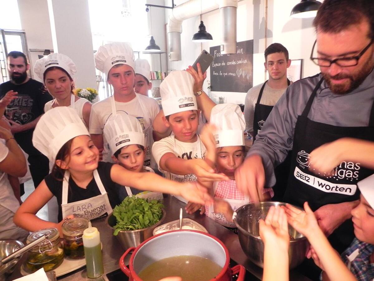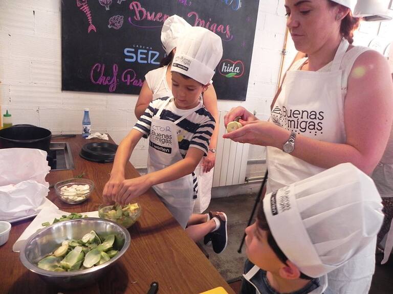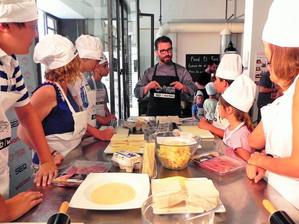 Los peques disfrutan con las manos en la masa en el último taller de Buenas Migas