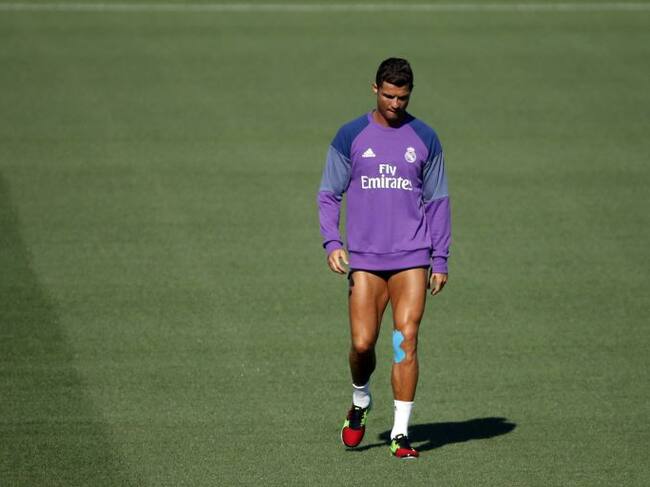 El delantero portugués del Real Madrid, Cristiano Ronaldo, durante el entrenamiento que el equipo realiza en la Ciudad Real Madrid. / Juan Carlos Hidalgo (EFE)