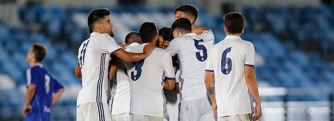 Los jugadores del Castilla celebran el gol de Sergio Díaz / REAL MADRID