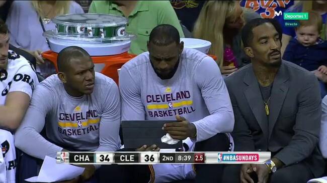 Fue la estrella de los Cavaliers también quien protagonizó la imagen más sorprendente del partido porque se puso en pleno partido, al inicio del segundo cuarto cuando su equipo estaba dos puntos arriba, a mirar no se sabe muy bien qué en una tableta.