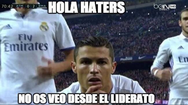 Lo que no cambió en este derbi, ni cambiará nunca, fueron los memes a la finalización del encuentro. Un clásico de la Red que ya nadie pasa por alto. Cristiano es el principal protagonista, aunque los usuarios también se acuerdan de Simeone, Messi e incluso de Paco Alcácer. Aquí están los más destacados: