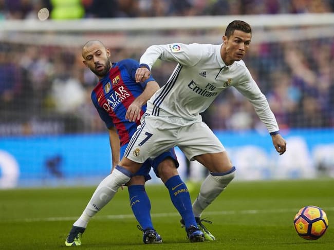 Mascherano intenta evitar que Cristiano llegue al balón / Alejandro García (EFE)