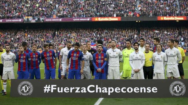 Jugadores del Real Madrid y del Barça, antes del Clásico en el Camp Nou / EFE