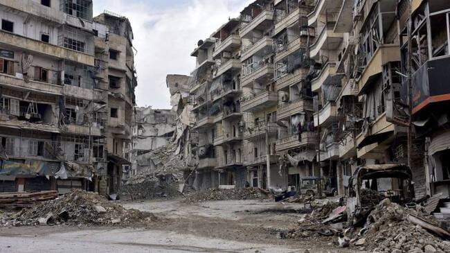 Fotografía facilitada por la Agencia Árabe Siria de Noticias (SANA) que muestra a los daños en los edificios del distrito de Al Sukari y Ansari de Alepo, Siria, hoy 23 de diciembre de 2016. El Gobierno sirio anunció la liberación de Alepo el pasado 22 de (EFE)