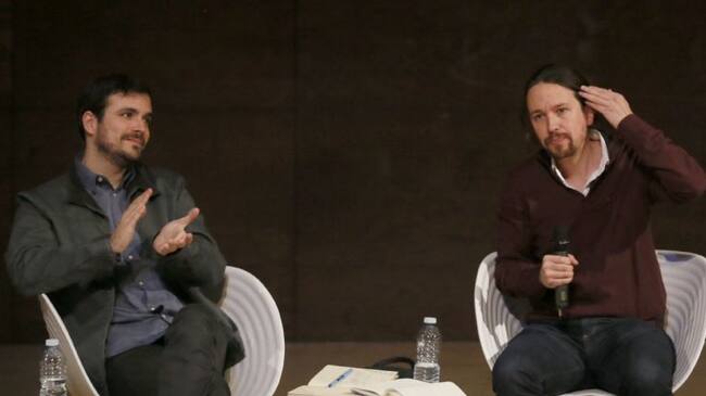 El secretario general de Podemos, Pablo Iglesias Y Alberto Garzón, coordinador federal de Izquierda Unida / Mariscal (EFE)