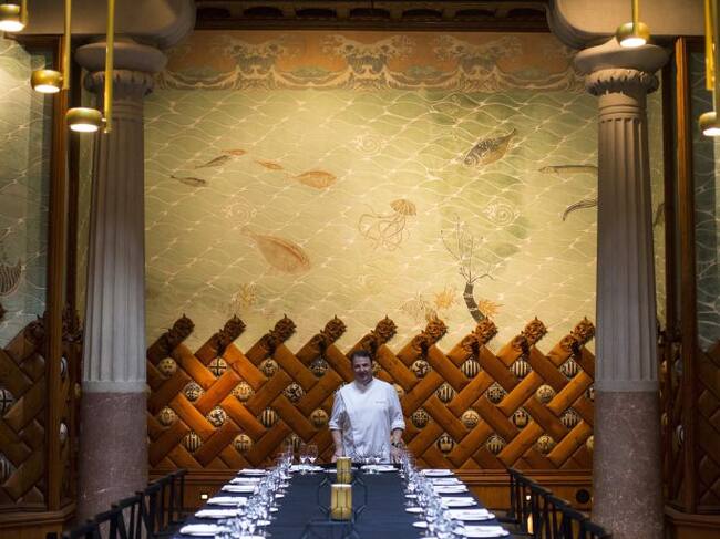 El restaurante Fonda España de Barcelona, asesorado por el chef donostiarra y ubicado en un espacio diseñado por Domènech i Montaner, ofrece un menú degustación repleto de guiños arquitectónicos