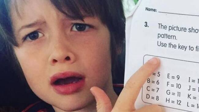El niño ante el ejercicio que no es capaz de resolver. / TheHoldernessfamily (Facebook)