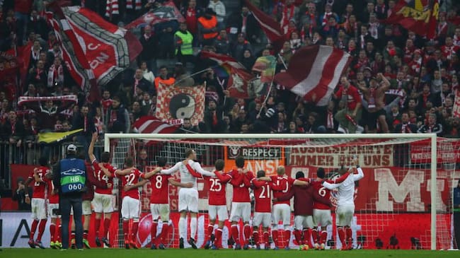 Los jugadores del Bayern celebran con su afición la victoria. / Michael Dalder (Reuters)