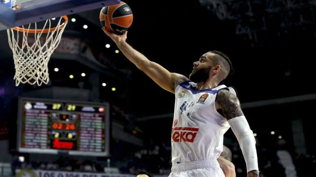 El alero estadounidense del Real Madrid, Jeffery Matthew Taylor trata de encestar ante el Estrella Roja de Belgrado / JuanJo Martín (EFE)
