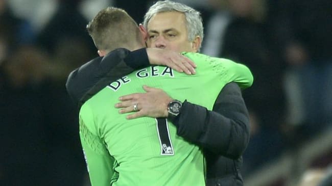 De Gea y Mourinho se abrazan tras un partido del United. / GETTY IMAGES (Getty Images)