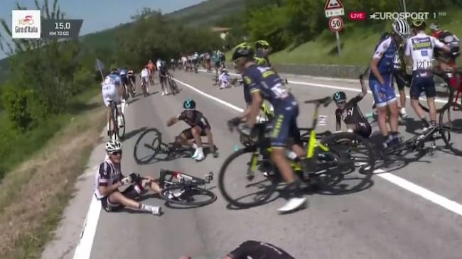 Caída masiva en el Giro por culpa de una moto de policía