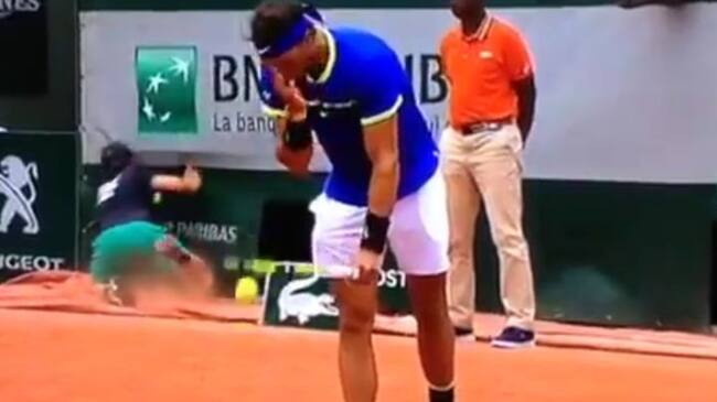 Nadal se dispone a sacar cuando el recogepelotas pierde el equilibrio(Twitter)