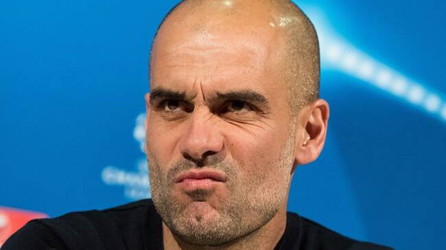 Guardiola frunce el ceño en una rueda de prensa previa a un partido de Champions con el City / GETTY IMAGES