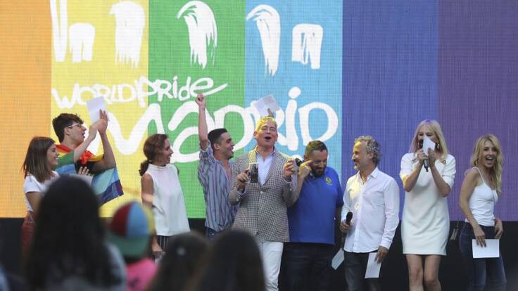 Los eventos centrales de la Fiesta Mundial del Orgullo han arrancado este miércoles con un multitudinario y reivindicativo pregón en el que una decena de destacadas personalidades del mundo de la cultura española han reivindicado la celebración y han reclamado, entre otros puntos, una ley estatal contra la homofobia. En una abarrotada Plaza de Pedro Zerolo y bajo el lema 'Ames a quien ames, Madrid te quiere', las fiestas del Orgullo LGTBi han tenido su pistoletazo de salida con un pregón en el que han participado Alejandro Amenábar, Ana Belén, Cayetana Guillén Cuervo, Boris Izaguirre, Pepón Nieto, Javier Calvo y Javier Ambrossi, Dulceida, Topacio Fresh y Lola Romero, presidenta del Atlético de Madrid femenino, entre otras personalidades.