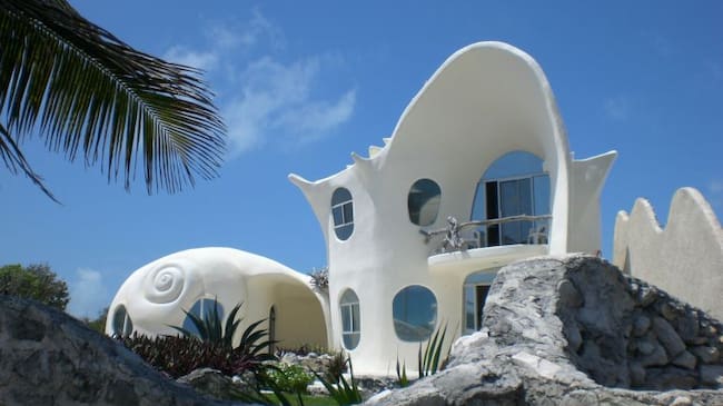 Situada en la preciosa Isla Mujeres, en Cancún (México), se encuentra una de las casas más maravillosas de la arquitectura. The Seashell house (La casa caracol), ya muestra en su fachada formas de conchas y caracolas marinas. Por dentro todo recuerda a una casa de sirenas.