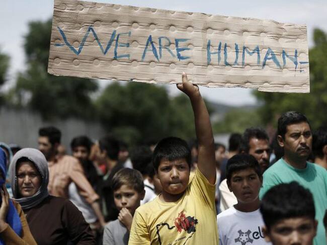 arios refugiados afganos se manifiestan para solicitar mejoras en sus condiciones. / YANNIS KOLESIDIS / EFE