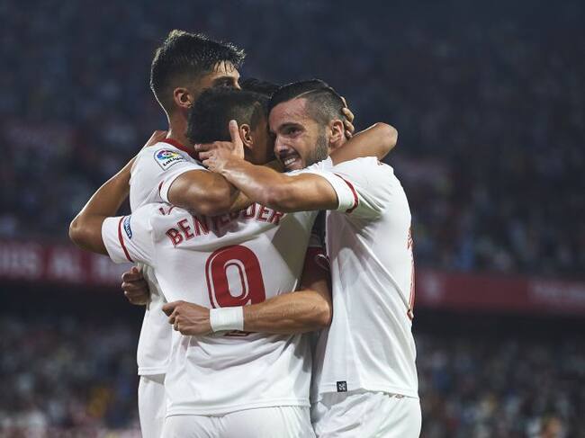 Los jugadores del Sevilla celebran uno de los goles de la noche. / Aitor Alcalde Colomer (Getty Images)